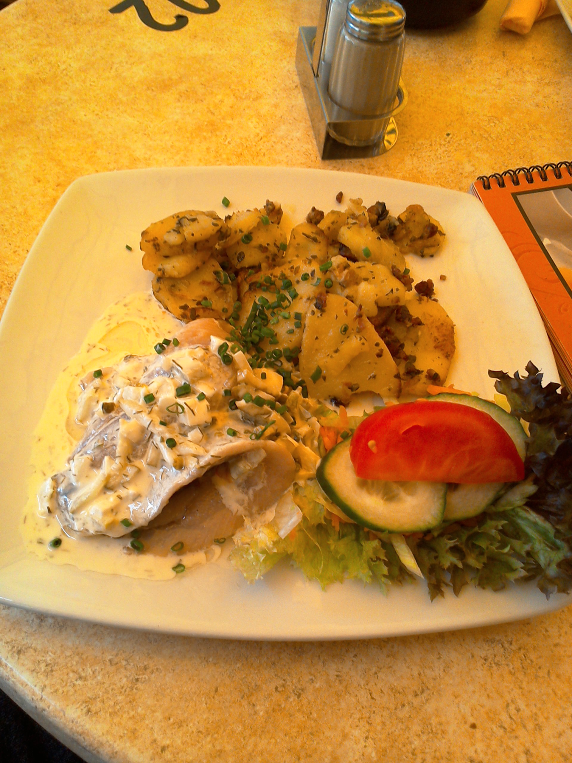 This plate of roasted potatoes and herring cost 7 euros. Apparently herring is very popular in this area.